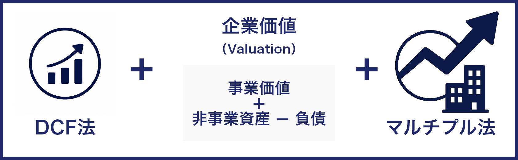 企業価値評価では、将来キャッシュフロー・市場データ・資産価値を踏まえ、